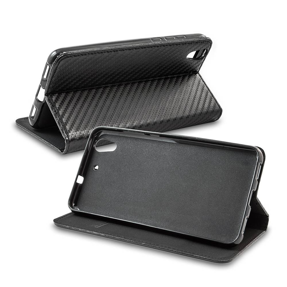Dieser Smart Carbon Wallet Case für Samsung S9 hat eine schwarze Kohlefaseroptik. Diese schwarze Hülle hat einen schicken Look.